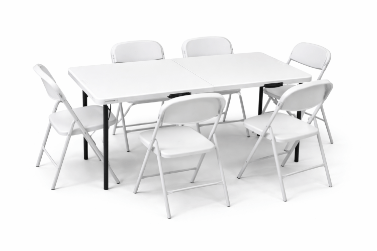 A practical 6-foot plastic table with 6 chairs is a simple, reliable seating setup for parties, meetings, cookouts, school events, and family gatherings. It gives you a clean space for serving food, setting out supplies, or gathering guests together, while the matching chairs provide comfortable seating for six people. Easy to use in a wide range of rental settings, this set is a dependable choice when you need extra tables and chairs for an event.