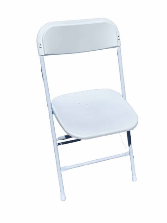 Our white folding chairs are manufactured with high-impact plastic with a light-weight powder-coated metal frame. The chair is suitable for both indoor and outdoor events. Weight limit for the chair is 300lbs. Chairs are $3.00 each for curbside drop off. If you would like to have us set up and break down the chairs for you please select the option in after adding the chairs to your cart. It is $1.00 per chair for set up and break down.